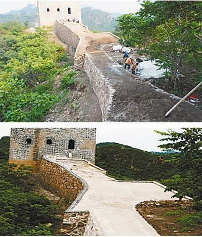 人民日?qǐng)?bào)9月25日消息,近日,位于遼寧省葫蘆島市綏中縣的“最美野長(zhǎng)城”被“砂漿抹平”一事持續(xù)為人關(guān)注,該段長(zhǎng)城的修繕方法受到質(zhì)疑。據(jù)了解,22日,國家文物局已派員趕赴現(xiàn)場(chǎng)核查評(píng)估,調(diào)查評(píng)估結(jié)果將會(huì)及時(shí)向社會(huì)公布。9月23日,本報(bào)記者前往該段長(zhǎng)城實(shí)地調(diào)查。 當(dāng)?shù)乇硎?ldquo;抹平”系歸安加固,防止長(zhǎng)城加速破損,維修前該段僅剩殘基 9月23日,記者來到小河口村附近的錐子山長(zhǎng)城。網(wǎng)上流傳的“水泥長(zhǎng)城”圖片即為錐子山長(zhǎng)城大毛山段C段墻體搶險(xiǎn)工程。記者在現(xiàn)場(chǎng)看到,約長(zhǎng)1200米左右的C段工程中,有500米左右是鋪有一層灰白色覆蓋物的“平板路”。 已于9月22日到達(dá)現(xiàn)場(chǎng)、由國家文物局派出的調(diào)查員傅清遠(yuǎn)在看過現(xiàn)場(chǎng)和施工設(shè)計(jì)圖后表示,所謂“被抹平”并不準(zhǔn)確,“該段長(zhǎng)城因損毀嚴(yán)重,維修前就沒有城垛和女墻,按照原狀修整,原始長(zhǎng)城就沒有青磚,石頭都沒了。” 國務(wù)院2006年公布的《長(zhǎng)城保護(hù)條例》第三條規(guī)定:“長(zhǎng)城保護(hù)應(yīng)當(dāng)貫徹文物工作方針,堅(jiān)持科學(xué)規(guī)劃、原狀保護(hù)的原則。”第二十三條規(guī)定:“對(duì)長(zhǎng)城進(jìn)行修繕,應(yīng)當(dāng)依照文物保護(hù)法的規(guī)定辦理審批手續(xù),由依法取得文物保護(hù)工程資質(zhì)證書的單位承擔(dān)。長(zhǎng)城的修繕,應(yīng)當(dāng)遵守不改變?cè)瓲畹脑瓌t。” 在網(wǎng)上流傳的對(duì)比圖片中,修繕前的長(zhǎng)城粗獷而美麗,但修繕后的長(zhǎng)城卻完全變了樣子。遼寧省文物保護(hù)專家組成員井曉光告訴記者,網(wǎng)上所流傳的長(zhǎng)城對(duì)比圖實(shí)際上并不準(zhǔn)確,不是同一段長(zhǎng)城。井曉光說,網(wǎng)傳對(duì)比圖中所稱原有的遺存美景,是位于該修繕段落對(duì)面的另一段磚制殘墻,“能夠發(fā)現(xiàn)兩段長(zhǎng)城的走勢(shì)、山體的延綿形狀以及周邊植被有差別”。 當(dāng)?shù)囟嗝奈锊块T相關(guān)人員介紹,維修前,這段長(zhǎng)城僅剩的石頭地基殘破不堪,為避免爬山者肆意蹬踏,以及雨水沖刷、冰凍風(fēng)化帶來更大損壞,方案采取歸安加固工藝,把散落在地基外的石頭歸放回原處,然后進(jìn)行灌漿、夯實(shí)加固。這是經(jīng)專家反復(fù)論證形成的方案。 記者查閱了此次引起爭(zhēng)議的C段工程檔案中的修繕前、修繕中、修繕后的記錄照片,“平板路”路段在修繕前已經(jīng)無法找到女墻與垛口磚的痕跡,石質(zhì)殘基的歸安加固能看出白色勾縫填充痕跡。 井曉光告訴記者,該段長(zhǎng)城由于之前已經(jīng)損毀嚴(yán)重,部分路段甚至已經(jīng)變成一堆碎石攤在地上,原有垛口早已不見,只剩下了石質(zhì)殘基。井曉光解釋,殘基是原長(zhǎng)城的基礎(chǔ)部分,完整的長(zhǎng)城在這些殘基之上還有一層路面,之后才是高出路面的兩側(cè)垛口墻體。 維修方案通過各級(jí)專家組評(píng)審,方案顯示所用為三七灰土而非水泥砂漿,以防水防凍 記者了解到,2011年,綏中縣文物局針對(duì)長(zhǎng)城整體破損嚴(yán)重,部分地段有險(xiǎn)情,委托遼寧省文物保護(hù)中心設(shè)計(jì)了維修方案。隨后,方案連續(xù)通過了省文物局和國家文物局組織的專家評(píng)審。 據(jù)了解,整個(gè)錐子山長(zhǎng)城大毛山段部分段落搶險(xiǎn)工程共分A、B、C三個(gè)標(biāo)段,經(jīng)招投標(biāo)程序,分別由大連市古建筑園林工程有限公司、沈陽故宮古建園林工程有限公司、曲阜市園林古建筑工程有限公司、沈陽故宮古建筑有限公司進(jìn)行城墻和城樓單體建筑的修繕工作,四家公司均具有文物保護(hù)工程一級(jí)資質(zhì)。工程從2013年7月動(dòng)工,2014年11月完工,目前已通過遼寧省文物局組織的技術(shù)驗(yàn)收,即將報(bào)國家文物局最終驗(yàn)收。 記者查閱《綏中錐子山長(zhǎng)城大毛山段部分段落搶險(xiǎn)工程修繕方案》,方案中提出,“對(duì)頂部殘存素土海墁重新拍實(shí),再用三七灰土補(bǔ)充一層拍實(shí),平均厚度12厘米。” 井曉光解釋說,在對(duì)石質(zhì)殘基進(jìn)行歸安加固之后,之所以要鋪上一層三七土,是為防止雨水的沖刷,以及防止入冬后由于滲水形成凍脹造成磚體再次破裂。 國家文物局2014年印發(fā)的《長(zhǎng)城保護(hù)維修工作指導(dǎo)意見》指出:“長(zhǎng)城保護(hù)維修必須遵守不改變文物原狀和最小干預(yù)的原則。”“長(zhǎng)城保護(hù)維修必須保持長(zhǎng)城的原形制、原結(jié)構(gòu),優(yōu)先使用原材料、原工藝。”“不得采用水泥及未經(jīng)室內(nèi)實(shí)驗(yàn)和現(xiàn)場(chǎng)試驗(yàn)證明可靠、安全、有效及可再實(shí)施性的化學(xué)材料或工藝進(jìn)行長(zhǎng)城結(jié)構(gòu)加固或表面防風(fēng)化加固處理,避免形成新的安全隱患。” 負(fù)責(zé)該C段工程的曲阜市園林古建筑工程有限公司項(xiàng)目經(jīng)理孔祥立告訴記者,“三七土”即白灰與黃土按照3∶7的比例調(diào)制成的材料,其中并無水泥成分。與記者同行的沈陽故宮古建筑公司副總經(jīng)理艾先生介紹,這