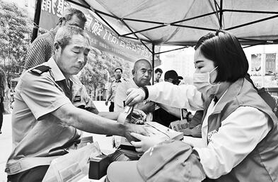 日前,志愿者醫(yī)療服務(wù)隊(duì)在廣陽(yáng)區(qū)吉祥小區(qū)為居民免費(fèi)體檢。廣陽(yáng)區(qū)“星期六文明行動(dòng)”志愿服務(wù)活動(dòng)常態(tài)化開(kāi)展,全區(qū)各志愿服務(wù)團(tuán)隊(duì)訪千樓、進(jìn)萬(wàn)家,以實(shí)際行動(dòng)為創(chuàng)建文明城市貢獻(xiàn)力量。吳 杰攝