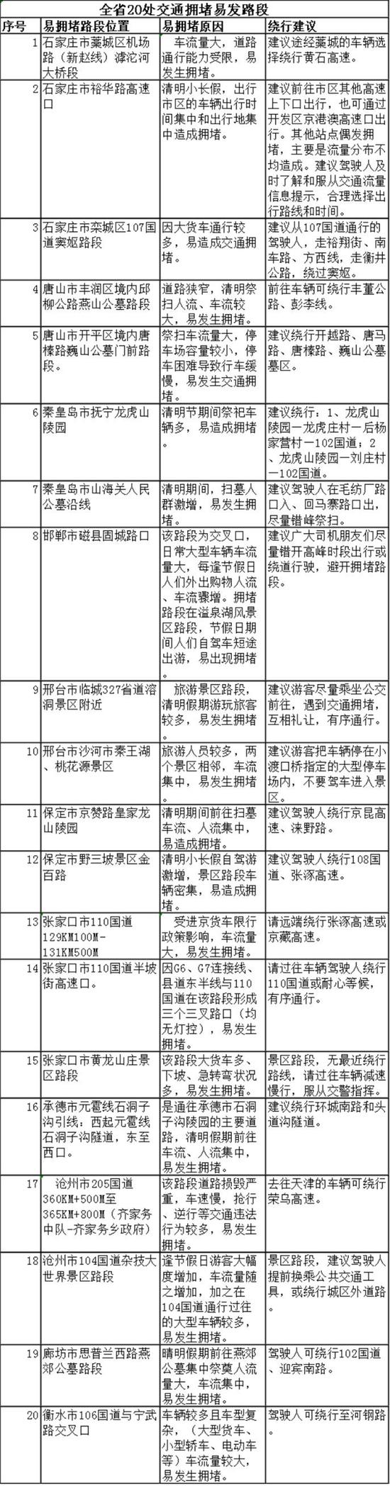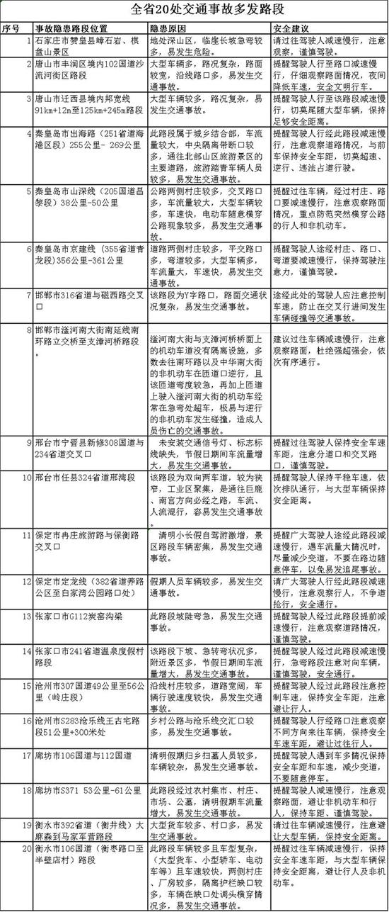 河北交管局發(fā)布40處清明節(jié)事故多發(fā)和易擁堵路段